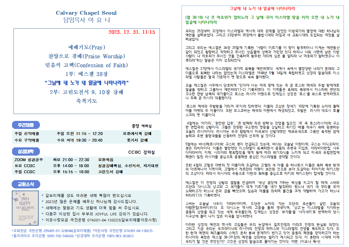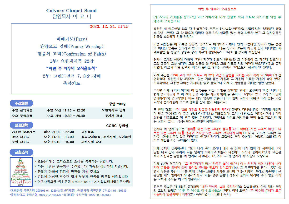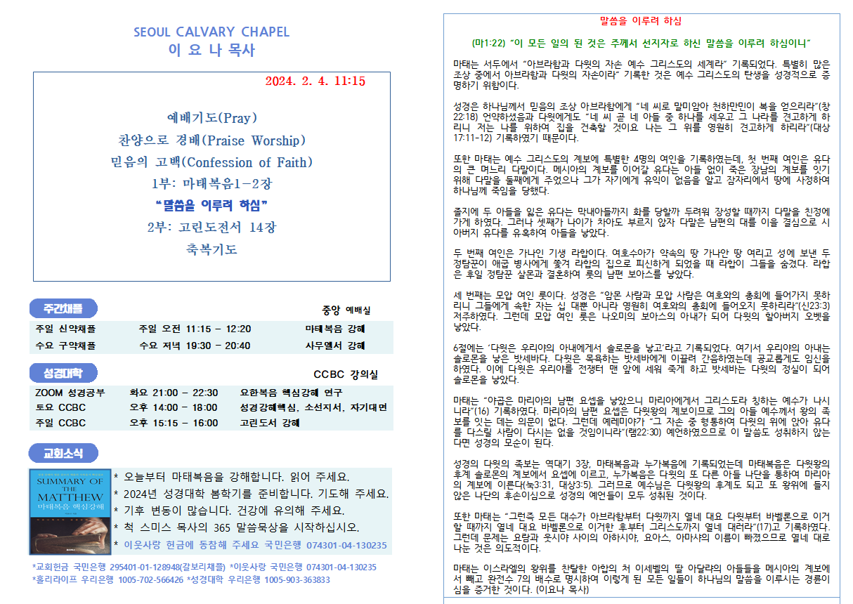 크리스천의 리더쉽 (마7:1,2) “비판을 받지 아니하려거든 비판하지 말라 너희의 비판하는 그 비판으로 너희가 비판을 받을 것이요 너희의 헤아리는 그 헤아림으로 너희가 헤아림을 받을 것이니라” 이 말씀은 판단의 원칙을 설명하신 것으로, 1절은 원칙이며 2절은 원칙에 대한 부연 설명이며, 3절부터는 예증이다. 따라서 주님은 도무지 판단하지 말라는 것이 아니라 우리의 판단이 정죄가 되어서는 안 되고 분별해야 한다는 말씀이다. 계속하여 주님은 “너 외식하는 자여 먼저 네 눈 속에서 들보를 빼어라 그 후에야 밝히 보고 형제의 눈 속에서 티를 빼리라 거룩한 것을 개에게 주지 말며 너희 진주를 돼지 앞에 던지지 말라 저희가 그것을 발로 밟고 돌이켜 너희를 찢어 상할까 염려하라”(5-6) 명하셨다. 이 말씀은 해석에..